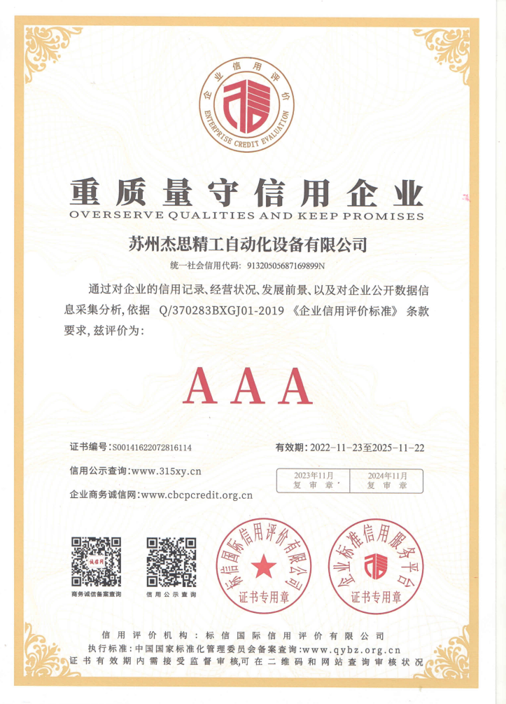 蘇州杰思精工自動化設備有限公司本著“高質量,優服務,求發展”的精神,